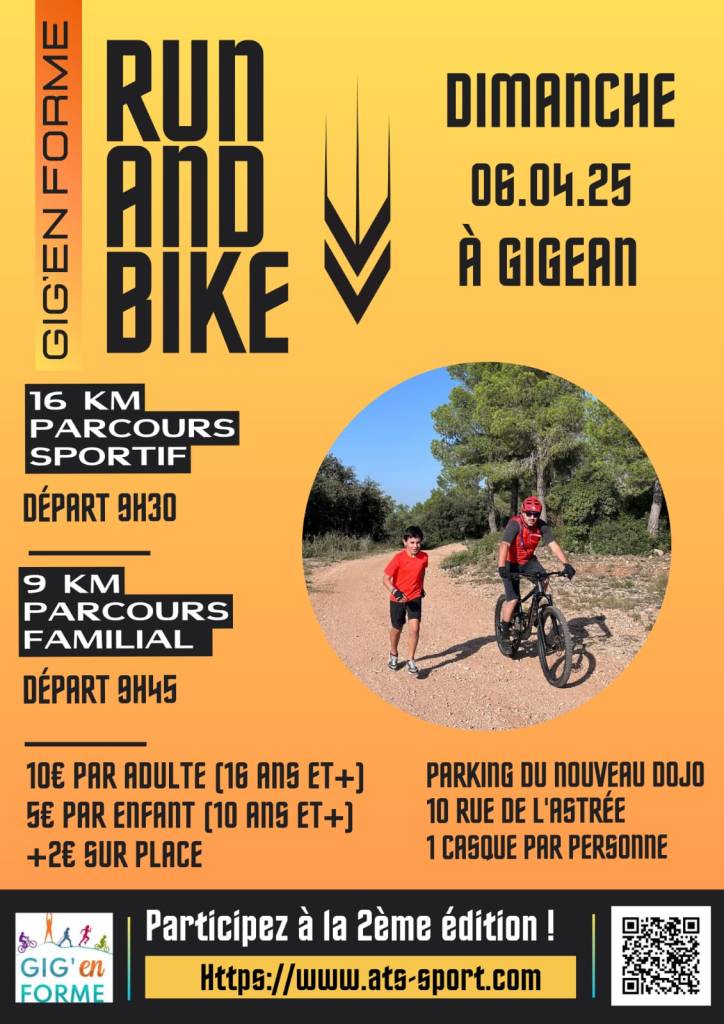 L’association Gig’en Forme vous invite enfin à s’inscrire pour la deuxième édition du Run & Bike qui aura lieu le dimanche 6 avril à Gigean ! Cette année, elle vous propose deux parcours : un parcours familial d’environ 9 km et un parcours un peu plus sportif de 16 km ! ![]()